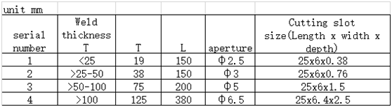 The size and shape of ASME non-pipe weld test block are shown in the chart below, when inspected