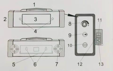 4. The power switch (8) on the right control panel of LED viewer is in three positions: off, on and foot switch mode